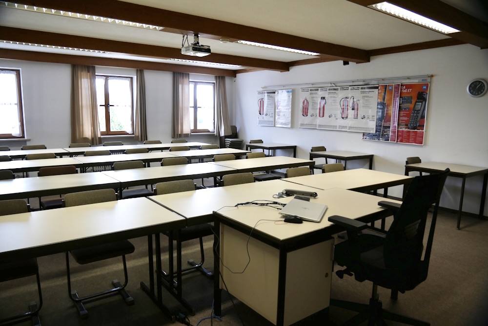 Dieser Raum ist mit einer ausfahrbaren Leinwand samt Beamer sowie einer klassischen Kreidetafel ausgestattet.