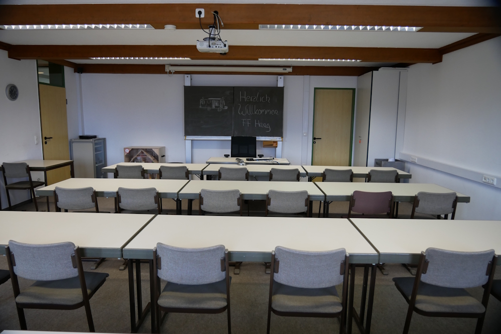 Für theoretische Ausbildungen der Löschgruppen sowie für Lehrgänge des Landkreises steht der Feuerwehr Haag ein eigener Schulungsraum zur Verfügung.