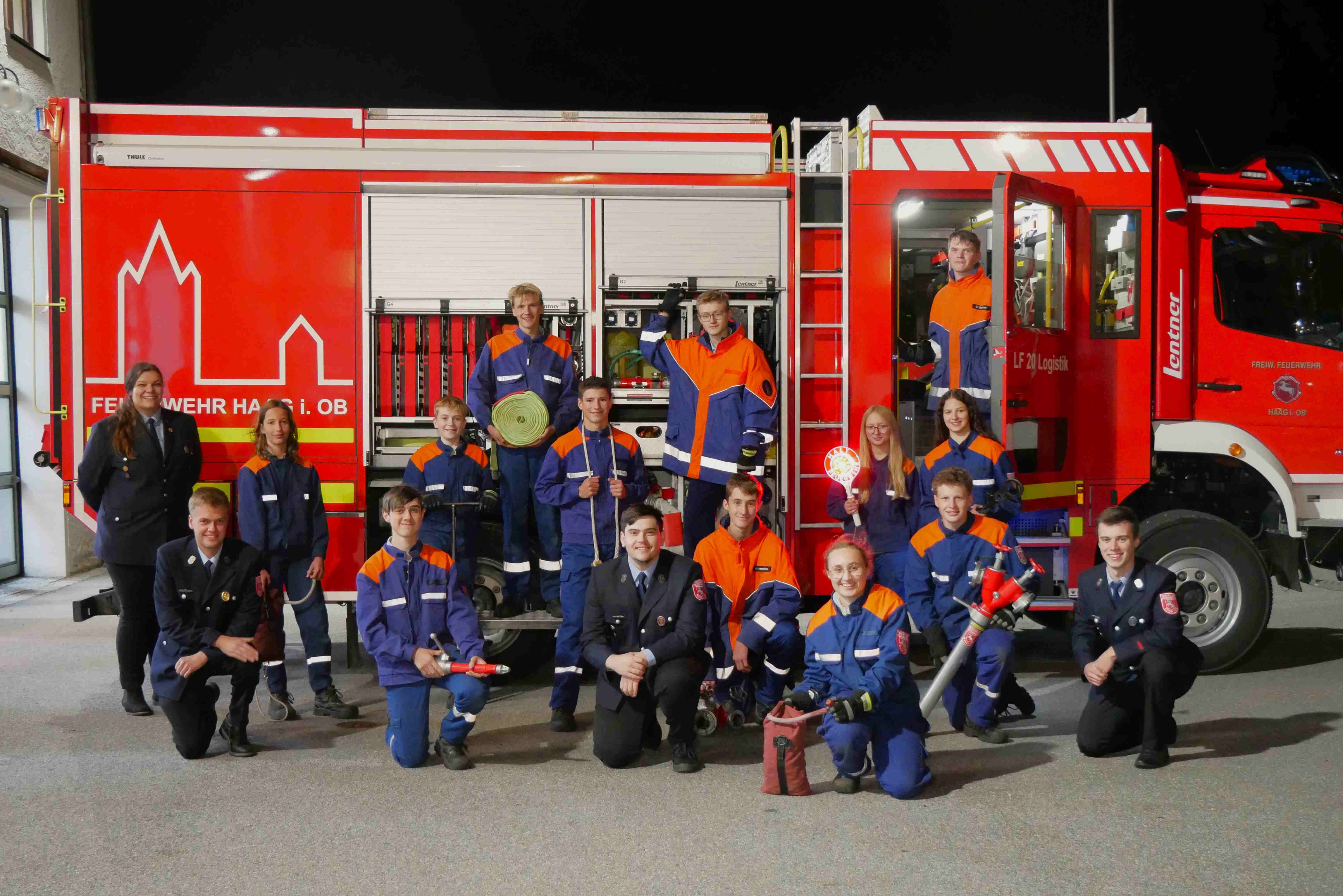 Dabei mussten sie verschiedene feuerwehrtechnische Aufgaben bewältigen – darunter das Anlegen von Knoten, das richtige Zuordnen verschiedener Gerätschaften, das Kuppeln einer 90 Meter langen Schlauchleitung sowie das gezielte Umspritzen eines Eimers mit einer Kübelspritze.
